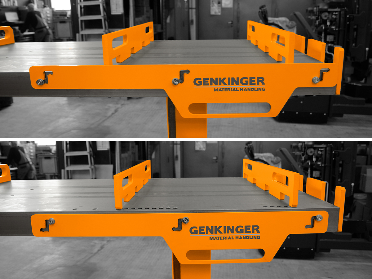 Der BAT bietet maximale Sicherheit im täglichen Betrieb. Die Last wird formschlüssig gesichert – über steckbare Front- und Seitenleisten sowie heb- und senkbare Seitenteile. Ein gefederter Feststellfuß sorgt für stabilen Stand und bleibt exakt in Position.