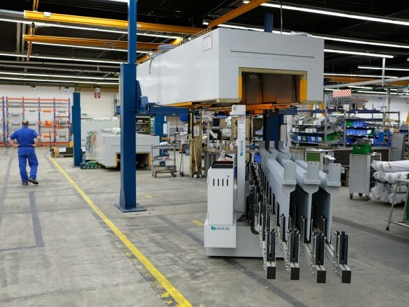 Beim Weltmarktführer für Anlagen der Getränkeindustrie bedient ein einziger Mitarbeiter Verpackungslinien schnell und effizient mit einem Mehrwegestapler von Genkinger. Der Mehrwege-stapler hebt Bauteile mit einem Gewicht bis 1.500 kg. Abhängig von Last und Transportgut wird das Fahrzeug mit unterschiedlichen Aufnahmemitteln ausgerüstet, darunter Klammern und Dreheinrichtungen. Insbesondere bei sperrigen und schweren Bauteilen verschafft sich der Bediener per Funkfernsteuerung stets den besten Blick auf Last und Fahrweg und steuert beschädigungsfrei.