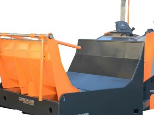 Ein Premium-Automobilhersteller fragte wegen der Ersatzbeschaffung eines Plattformwagens an. Die Herausforderung bestand darin, einen Coil-Transporter zu entwickeln, der 10 to bis 30 to schwere Coils sicher in einer Mulde transportieren konnte. Diese Konstruktionsart war nötig, um die Fliehkräfte zu beherrschen. Darüber hinaus ist diese Mulde für verschiedene Coil-Durchmesser von bis zu 1,90 m hydraulisch verstellbar. Ein Umlenkhebel ist als Kippsicherung eingebaut. In einer großen Anlieferungshalle werden die Coils direkt vom Lkw per Kran entladen. Nach der Übergabe startet das Genkinger Flurförderzeug die Fahrt zur Presse. Der Plattformwagen ist für 24/7-Einsätze ausgelegt und inzwischen rund 8.000 Betriebsstunden gelaufen – immer störungsfrei.
