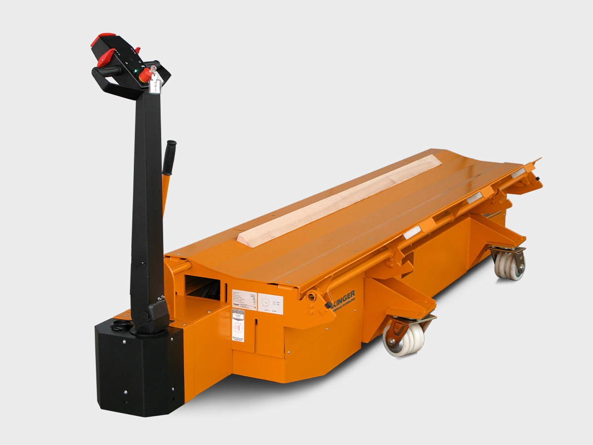 Die abklappbare Mitfahrplattform erleichtert das Überwinden längerer Distanzen. Die Wechselbatterie mit Wechselwagen ermöglicht kontinuierliches Arbeiten ohne Unterbrechungen. So wird der Dockentransport effizienter und komfortabler.