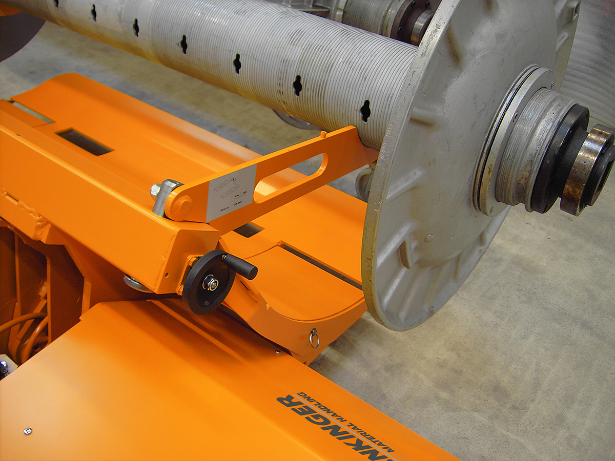 Die in der Mulde verbauten Adapter lassen sich einfach auf den jeweiligen Rohrdurchmesser einstellen. So ist auch der sichere Transport von teilbewickelten Kettbäumen problemlos möglich – ohne Verrutschen, ohne Schäden am Kettbaum, ohne Kompromisse.