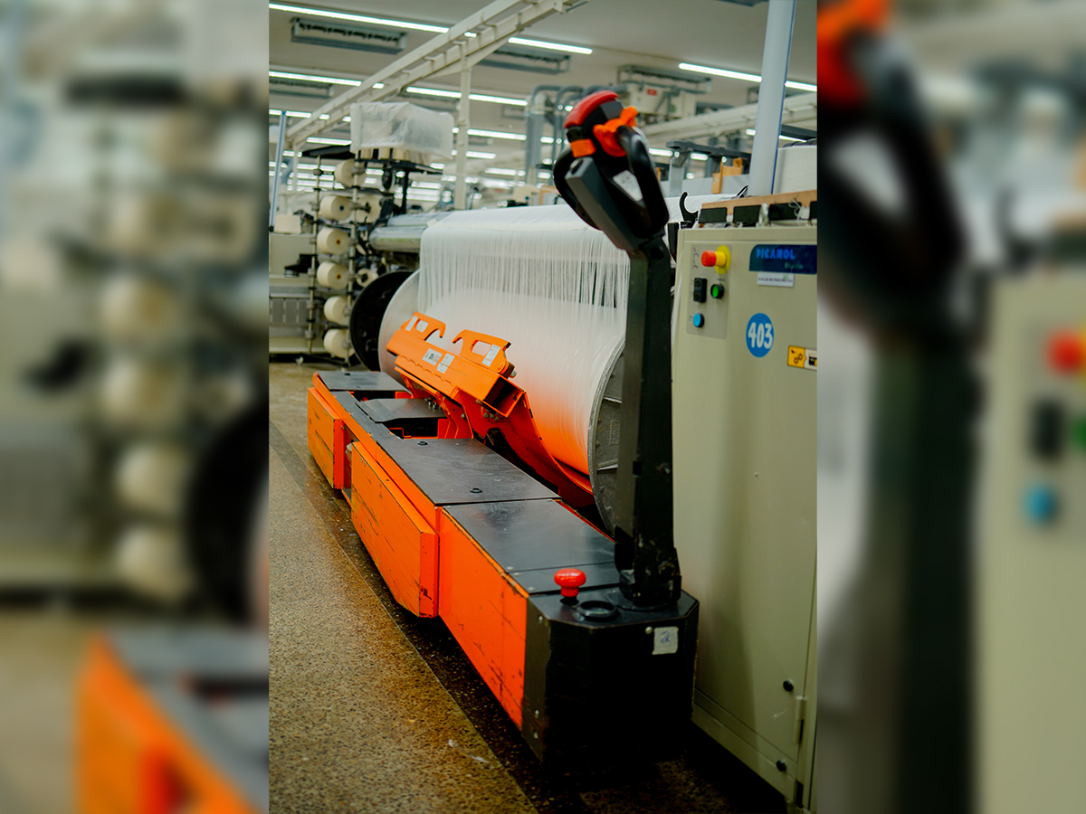 Der EE-KHUM ist ein leistungsstarker, elektrohydraulischer Kettbaum-Hubwagen mit integrierter Mulde, speziell entwickelt für den sicheren Transport von Voll- und Halbkettbäumen in Webereien. Er überzeugt durch höchste Flexibilität, ergonomisches Handling und maximale Sicherheit..