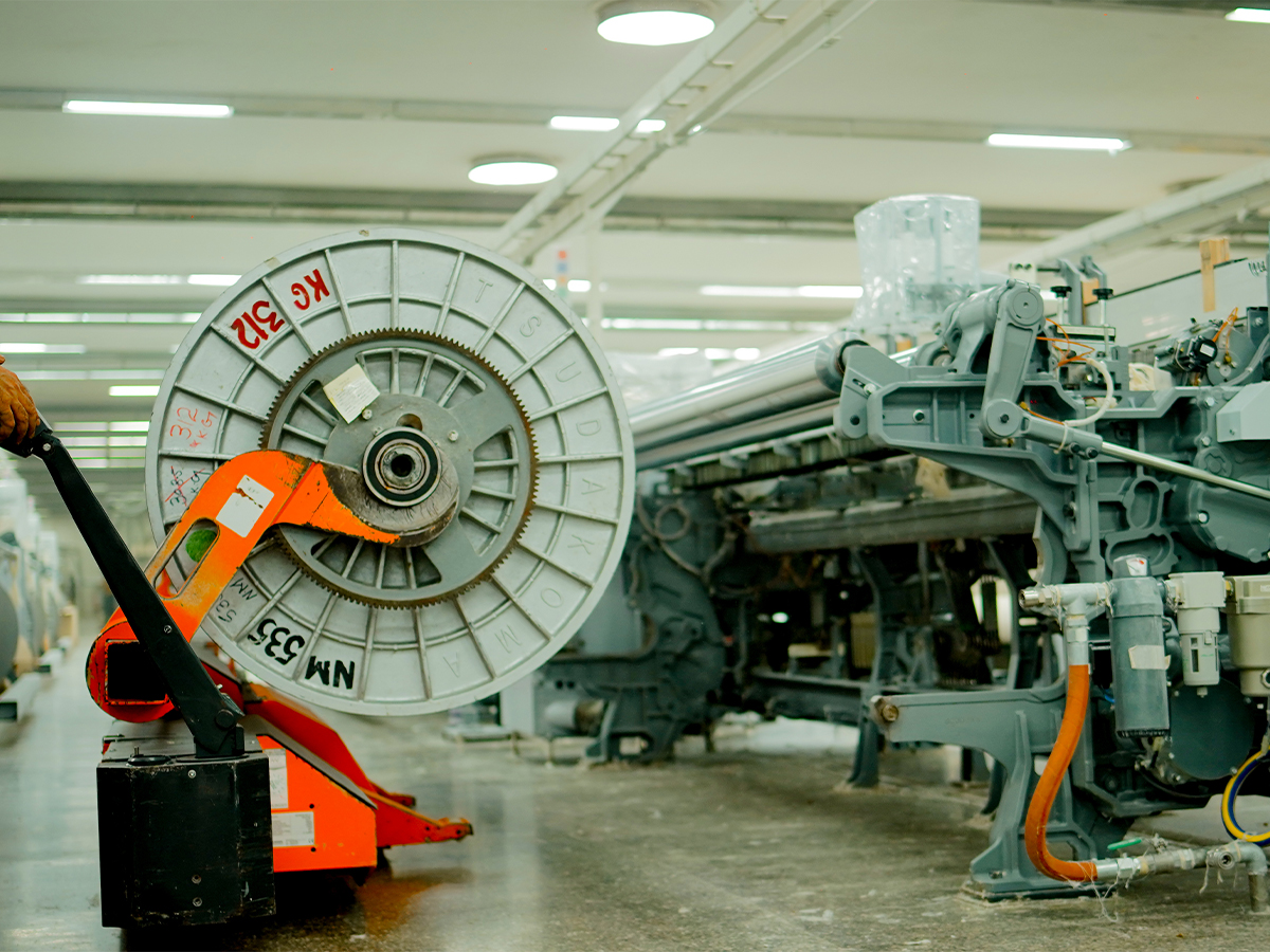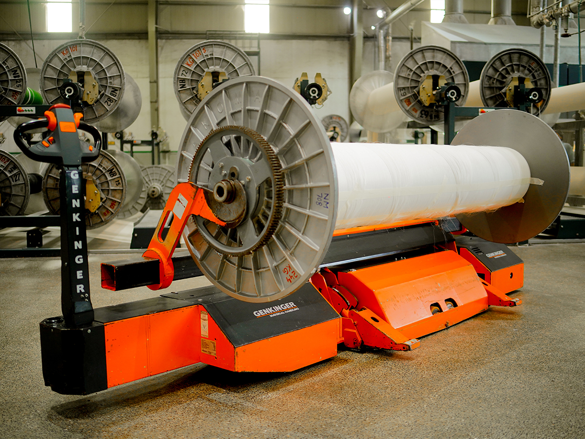 Das platzsparende Design mit kleinem Wenderadius erlaubt den Einsatz in engen Produktionsbereichen und schmalen Gängen. Dadurch profitieren Sie von maximaler Bewegungsfreiheit und einem sicheren Transport auch auf begrenztem Raum – ideal für den Einsatz in modernen Webereien mit hohen Anforderungen an die Logistik.