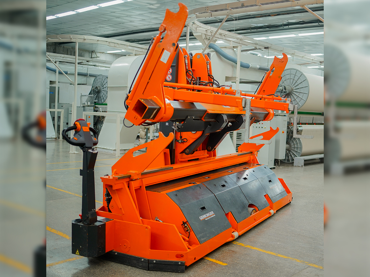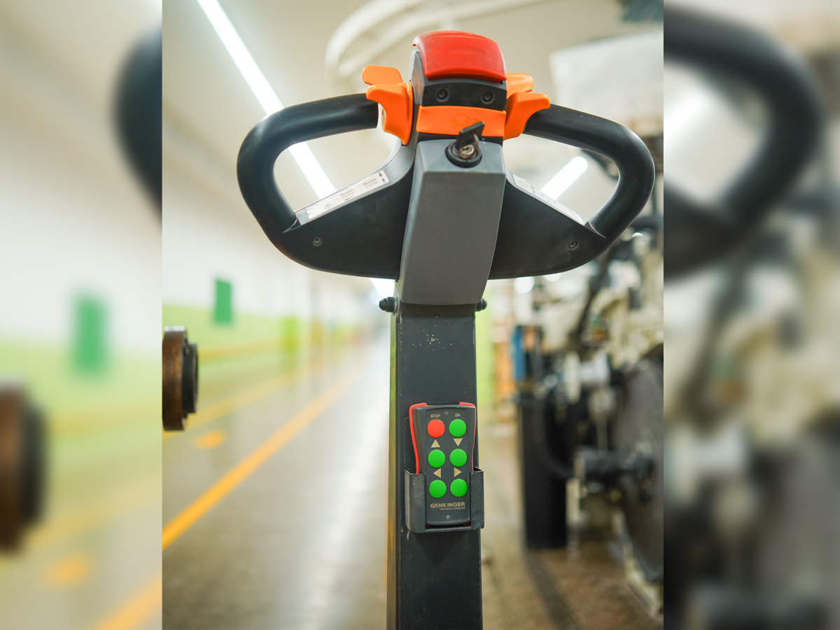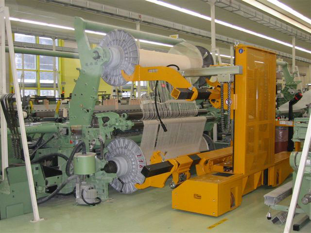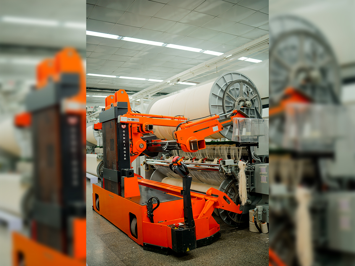 Mit unserem Elektro-Doppelkettenhubwagen ist der zeitaufwändige Artikelwechsel im Handumdrehen erledigt: Eingezogener Unterbaum und Oberbaum werden in einem Schritt transportiert und eingelegt. Das spart Zeit, reduziert die Stillstandzeiten Ihrer Maschinen und erhöht die Produktivität Ihrer Weberei. Die elektrische Antriebstechnik sorgt für ein müheloses, ergonomisches Handling, während die intuitive Bedienung die Arbeit einfach, effizient und sicher macht.