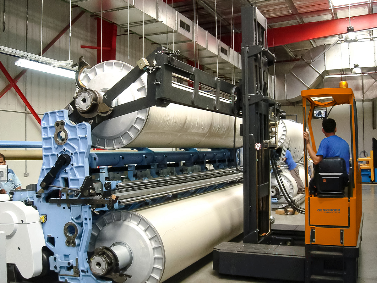 Ob beim Einlagern, Auslagern oder dem innerbetrieblichen Transport: Der EE-MSR bietet höchste Flexibilität bei gleichzeitig minimalem Platzbedarf. Der robuste Aufbau und die leistungsstarke Technik sorgen für Zuverlässigkeit und Sicherheit – auch im Außeneinsatz. Ideal geeignet für die Textilindustrie, wo breite und schwere Kettbäume effizient bewegt werden müssen.