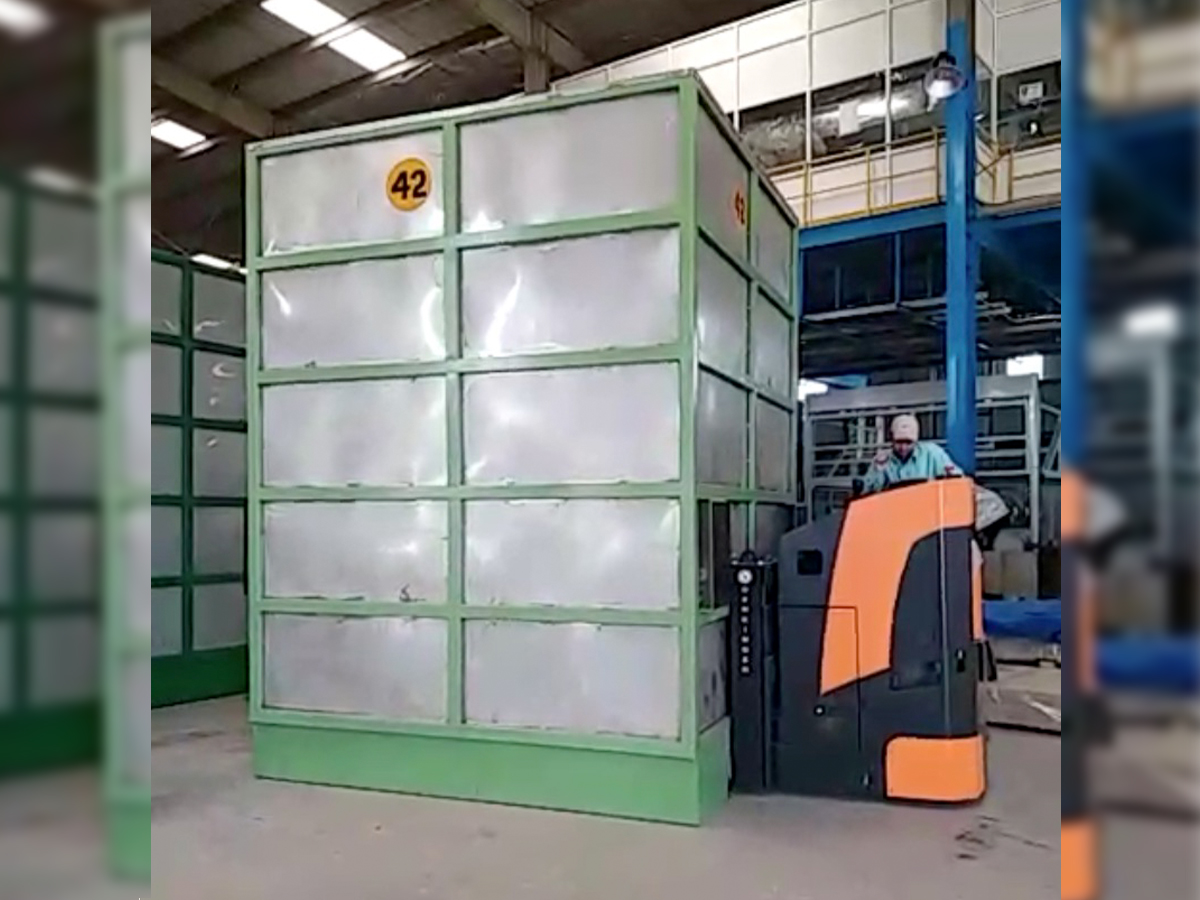 Für den anspruchsvollen Einsatz in der Herstellung von Chemiefasern: Unser vollelektrischer Niederhubwagen mit Lastplattform wurde speziell für den Transport von überdimensionalen Spinnkannen entwickelt. Mit einer Tragkraft von bis zu 20000 kg meistert er auch schwerste Lasten mühelos.