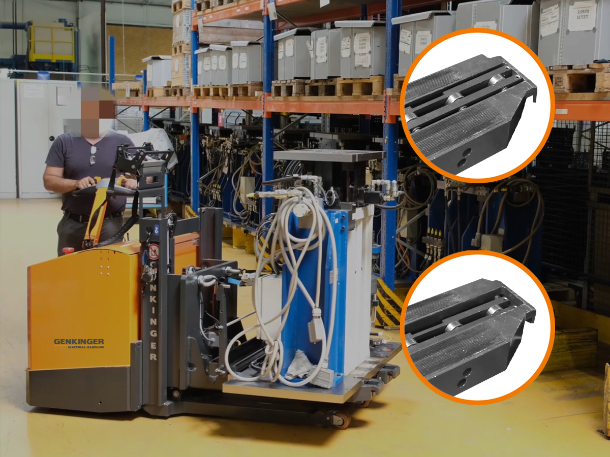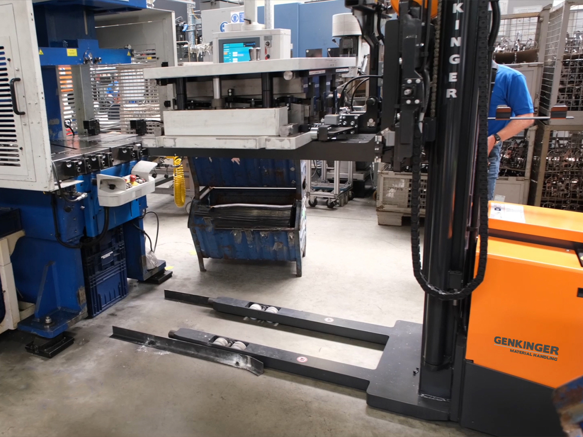 Genkinger Elektro-Geh-Werkzeugwechselwagen ermöglichen einen kraftsparenden und sicheren Werkzeugwechsel. Dank des elektrischen Antriebs bewegen Sie schwere Werkzeuge präzise und ohne körperliche Belastung. Die Wagen sind exakt auf Ihre Werkzeuge wie, Matrizen-, Stanz-, Halbzeug-, Press-, Umform-; Gießformen oder Spritzgusswerkzeuge, sowie den Wechselprozess und die Fahrwege abgestimmt.