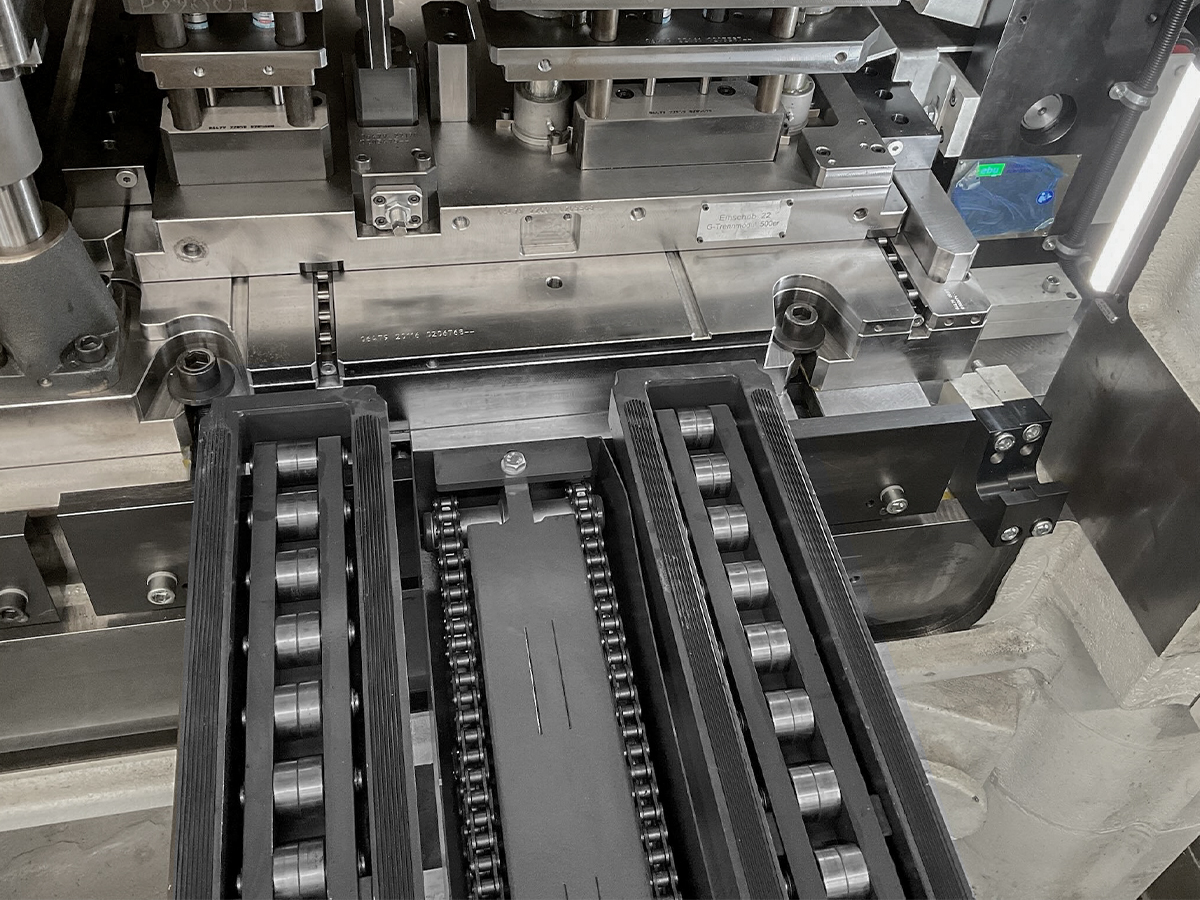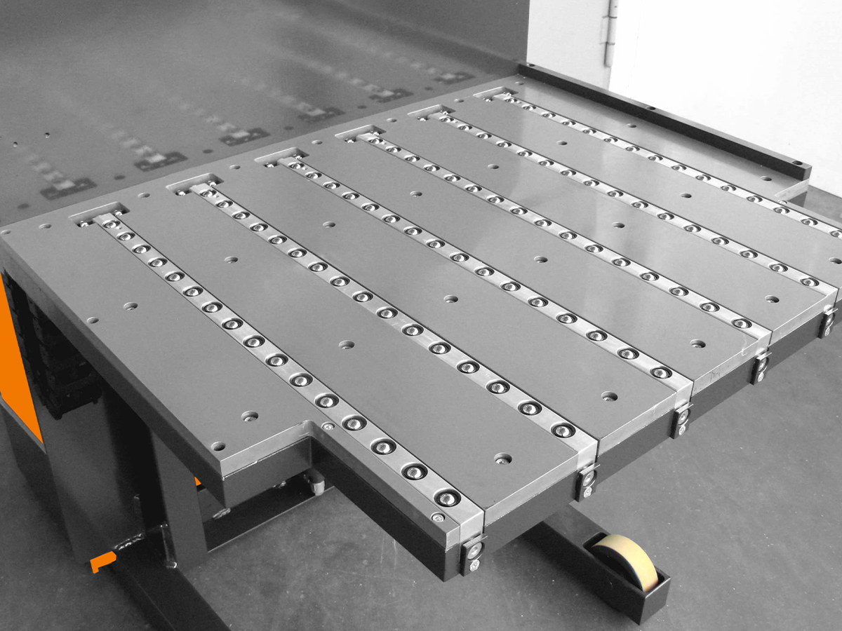 Die Andockleisten am Wechselwagen und am Pressentisch bieten eine bewährte, sichere Lösung für die präzise Positionierung und Arretierung des Werkzeug-Wechselwagens an der Presse. Die Höhenpositionierung und die Anordnung der Andockleisten sind millimetergenau berechnet, um eine exakte und sichere Verbindung zwischen dem Wechselwagen und der Presse zu gewährleisten.