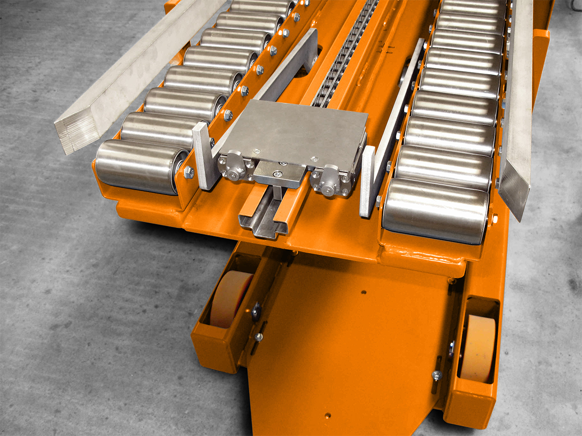 Sicherer Chargentransport mit Rollenbahn und Zug-/Schubkette