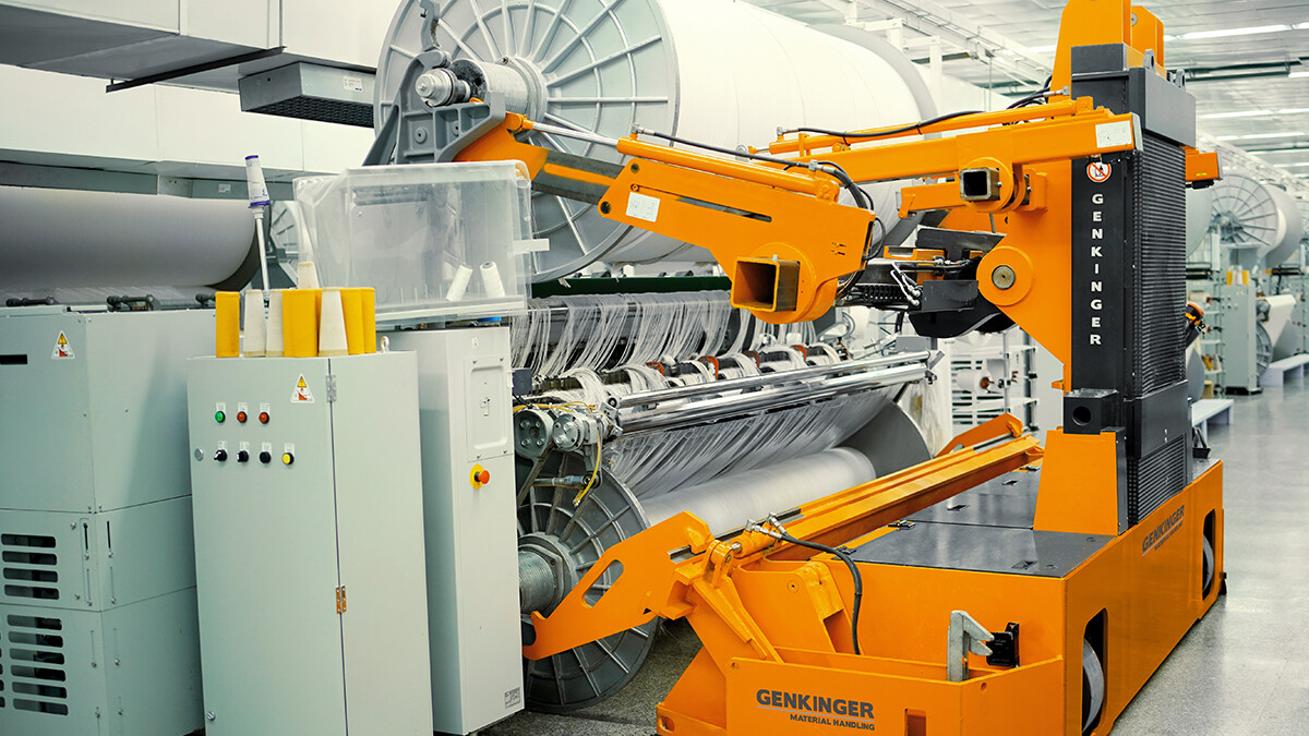 PLATZHALTERTEXT: Mit kompaktem Design, hoher Wendigkeit und einfacher Bedienung sorgen Genkinger-Fahrzeuge für effiziente Abläufe und minimieren Stillstandzeiten. Vertrauen Sie auf robuste Technik, die Ihre Produktionsprozesse nachhaltig unterstützt und Ihre Weberei effizienter macht.