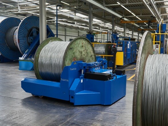 Ein Hersteller von Stahlseilen für Seilbahnen und Architekturprojekte suchte eine effiziente Methode, um schwere Seiltrommeln zu innerbetrieblich zu bewegen – und setzt nun auf den Genkinger Niederhubwagen. Die Lastaufnahme erfolgt mit Prismazinken, welche die schweren Seiltrommeln frei heben. Durch das kompakte Design hat der Bediener immer einen guten Überblick. Der Niederhubwagen übernimmt viele Aufgaben, die zuvor ein viel größerer Schwerlaststapler durchführte. Die Vorteile für den Kunden: