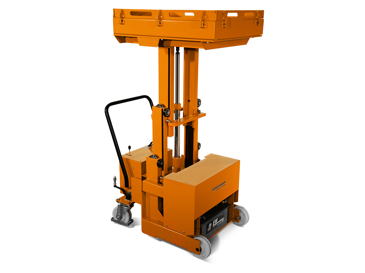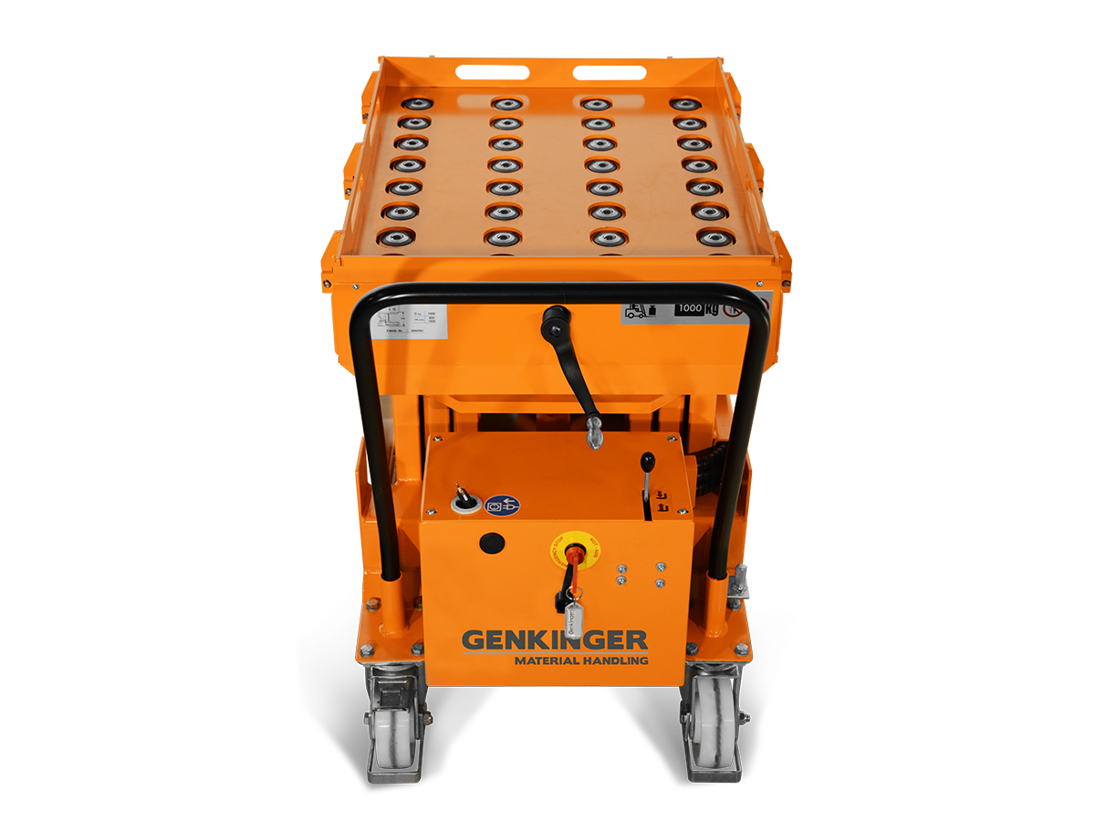 Zum Einsatz kommt ein kompakter Hubtisch mit elektrohydraulischem Hub. Die Hubbewegung erfolgt präzise und feinfühlig über ein manuelles Handhebelschaltventil.