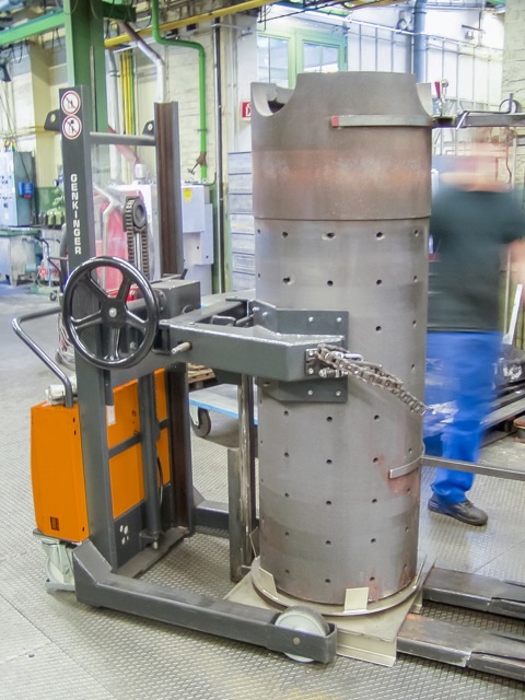 Der manuelle Hochhubwagen mit mechanischer Greif- und Schwenkvorrichtung ist speziell für den Einsatz in der Metall- und Gießereiindustrie entwickelt. Er ermöglicht das sichere Aufnehmen, Heben und präzise Ausgießen von Schmelztiegeln – ohne elektrischen oder hydraulischen Antrieb.
