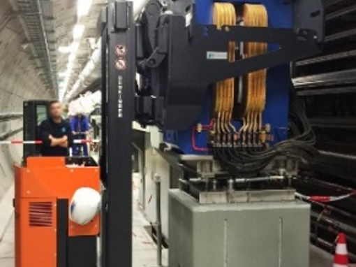 - ein weiterer Mehrwege-Plattformwagen für tonnenschwere Spezialmagnete und Klystrone, Instrumente zur Erzeugung und Verstärkung von Mikrowellen.