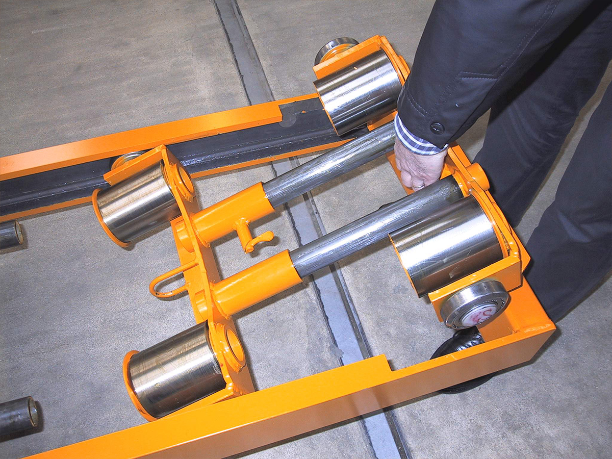 Das Ausrichten von Kettbäumen wird mit unseren drehbaren Laufwagen spürbar einfacher und effizienter. Besonders bei Kettbäumen mit Passfedernut sorgt die Drehfunktion dafür, dass das Kettbaumrohr mühelos in die richtige Position gebracht werden kann. So lassen sich Kettbaumrohre problemlos durch mehrere Teilkettbäume führen.