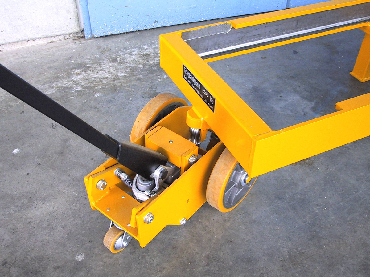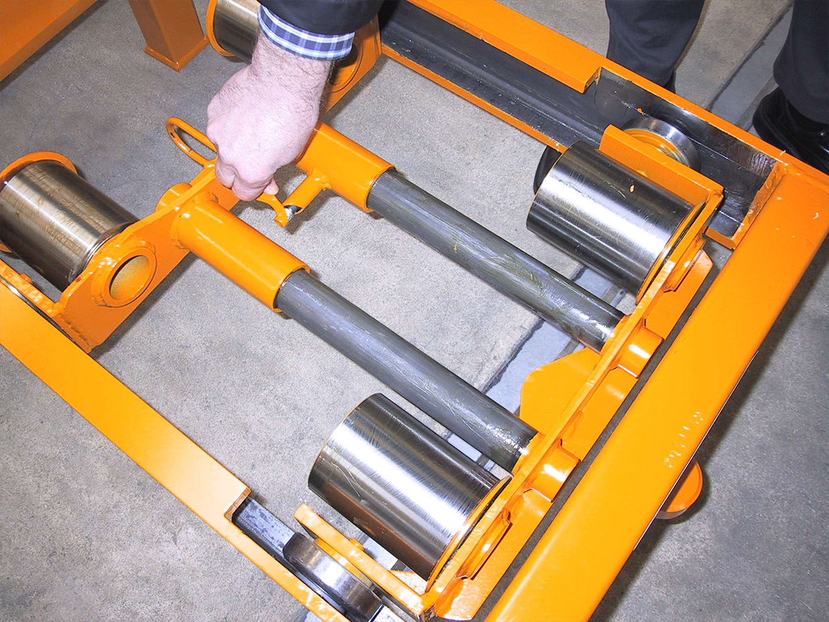 Kettbäume mühelos ausrichten dank drehbarer Laufwagen.