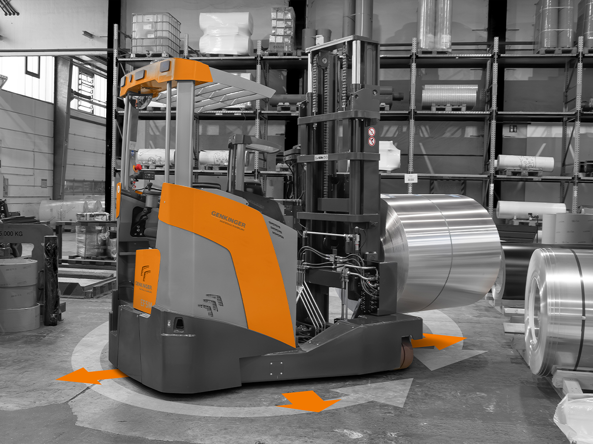 Genkinger Elektro Mehrwege- und Vierwegefahrzeuge sind die ideale Lösung für den sicheren und platzsparenden Transport von Langgut, Paletten und schweren Einzelteilen in Industrie, Produktion und Lagerlogistik. Besonders in engen Gängen, Hochregallagern oder komplexen Materialflussprozessen ermöglichen sie maximale Flächennutzung und hohe Prozesssicherheit.