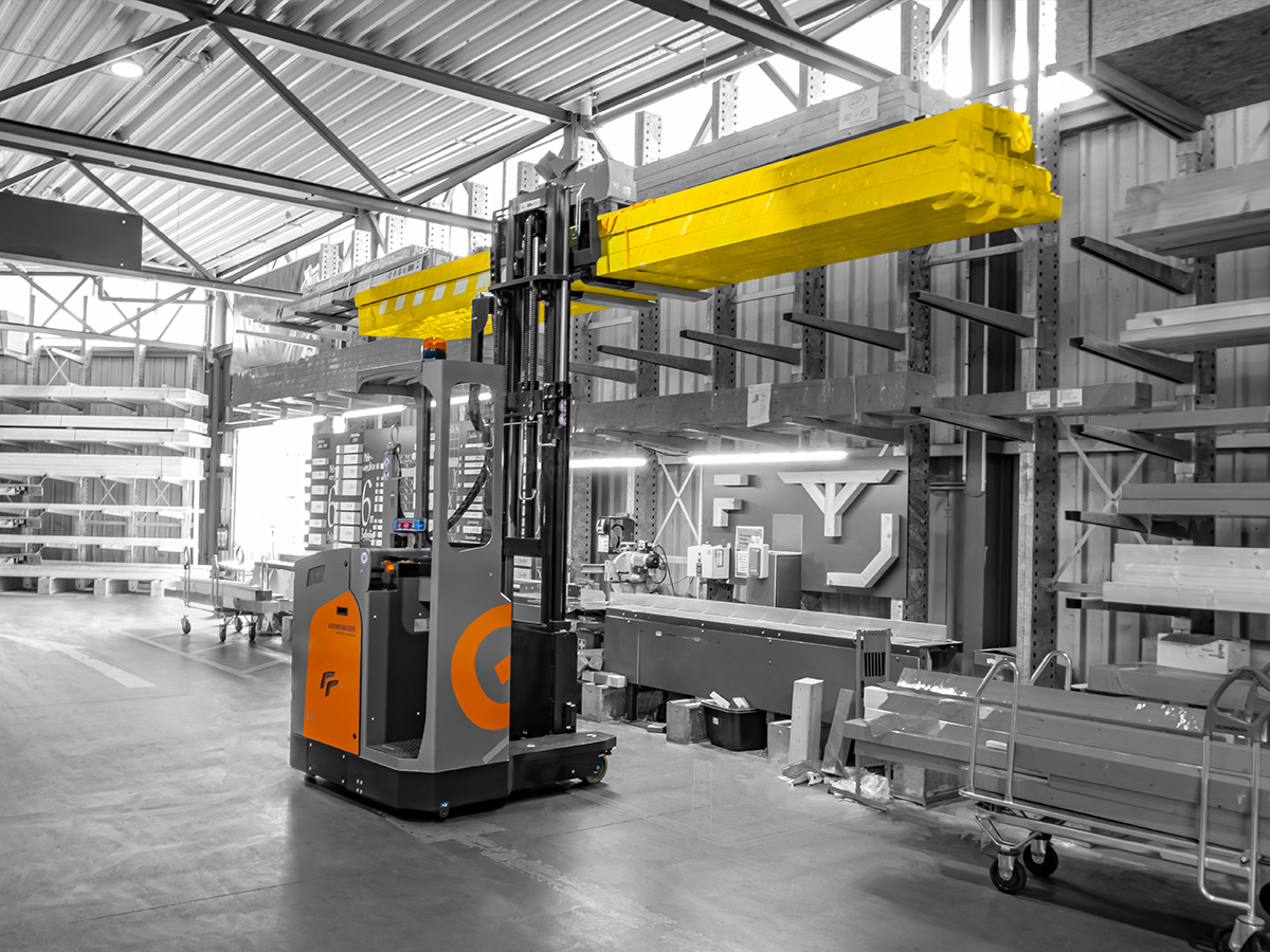 - Effizienter Langguttransport auch in schmalen Lagergängen