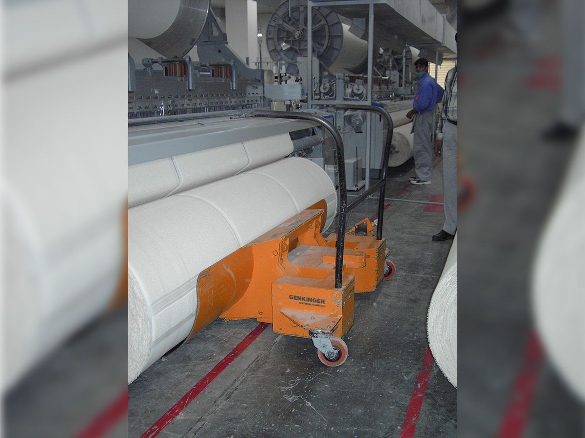 Die durchdachte, leichtgängige Fahrwerkskonstruktion ermöglicht es, die Wagen auch bei voller Beladung bequem von nur einer Person zu bewegen. So wird der Materialfluss in der Weberei optimiert, Stillstände werden reduziert, und Ihre Produktionsprozesse laufen reibungsloser.