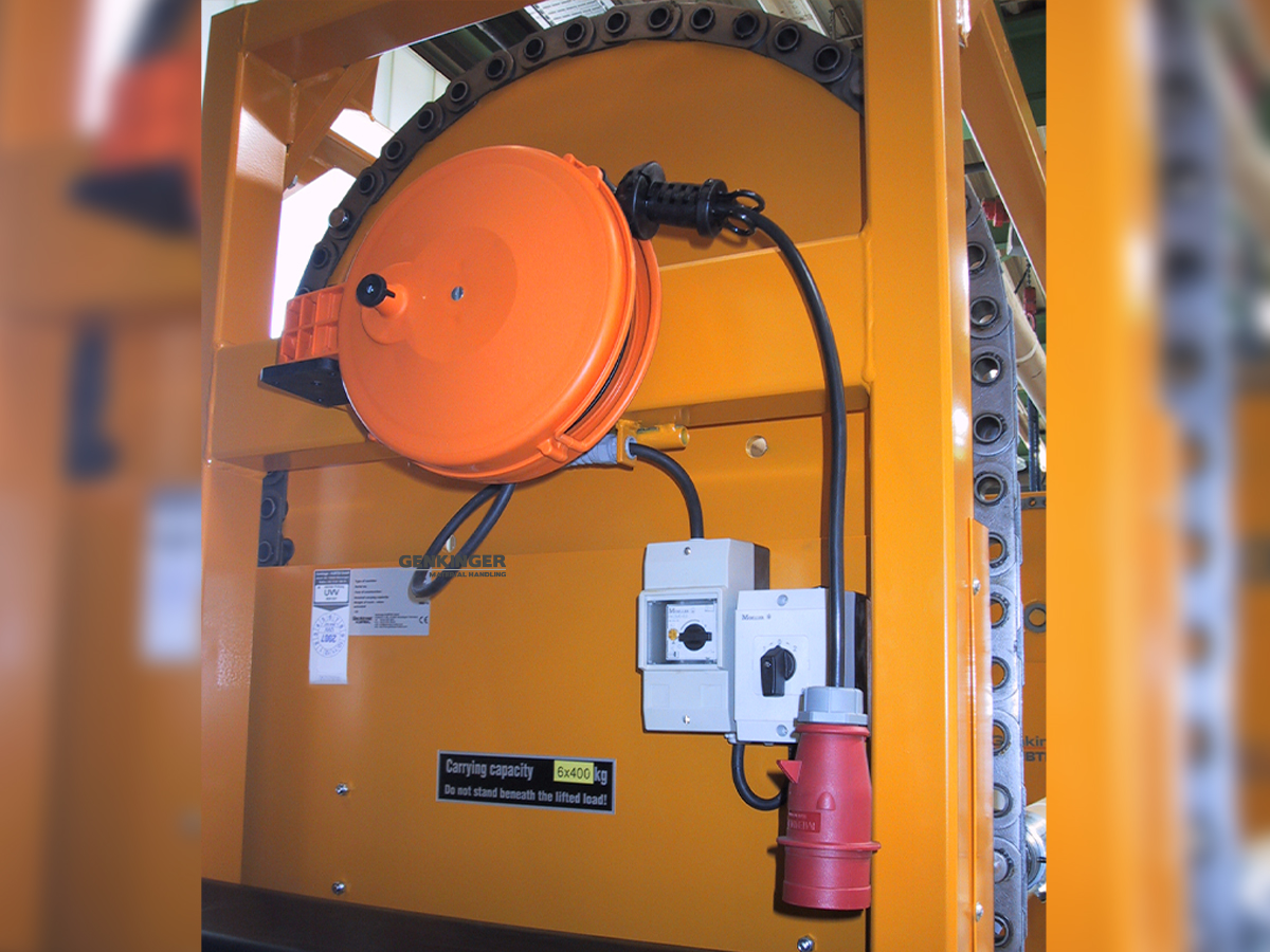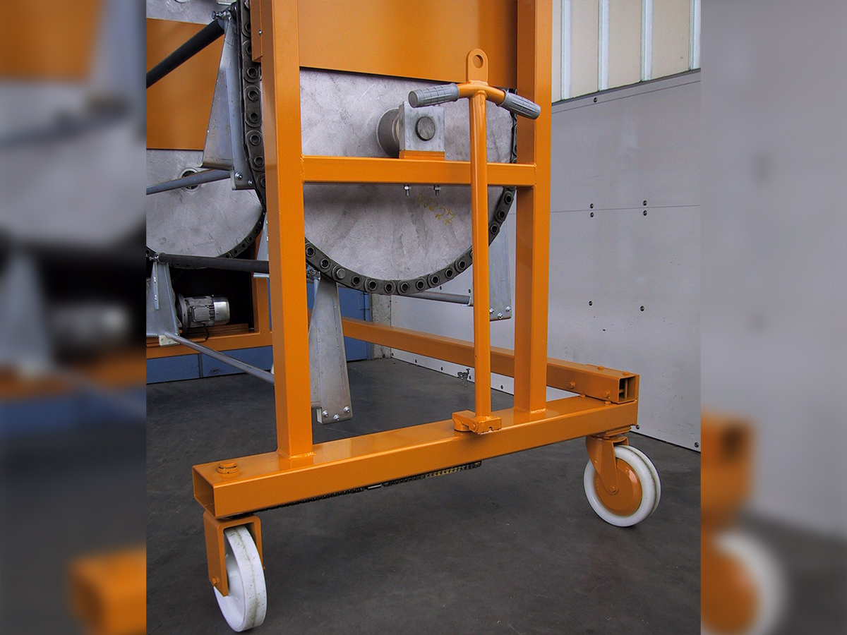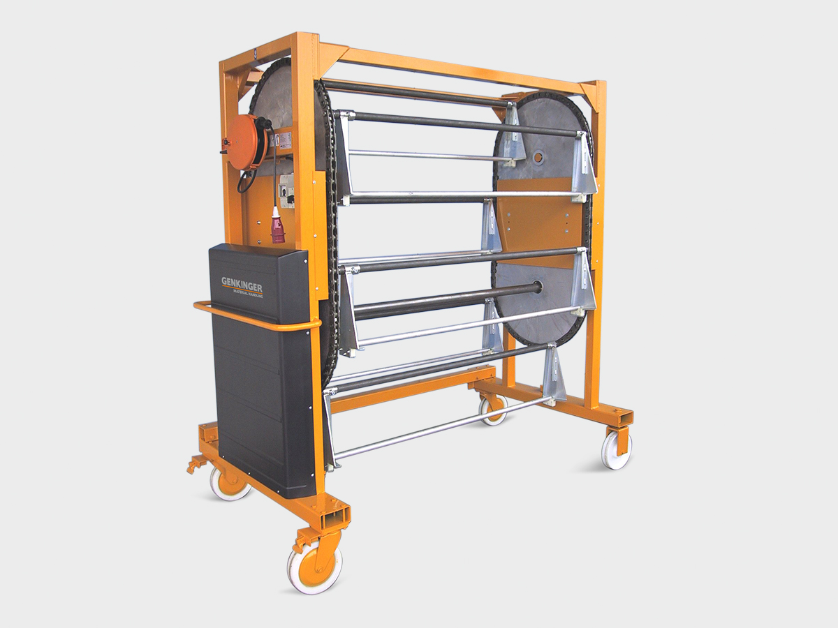 Die stabile Drehkette sorgt für ein besonders komfortables, effizientes und sicheres Handling Ihrer Warenbäume. Sie ermöglicht, dass der benötigte Warenbaum sofort griffbereit ist, wodurch der Materialfluss in der Weberei reibungslos und zeitsparend bleibt.